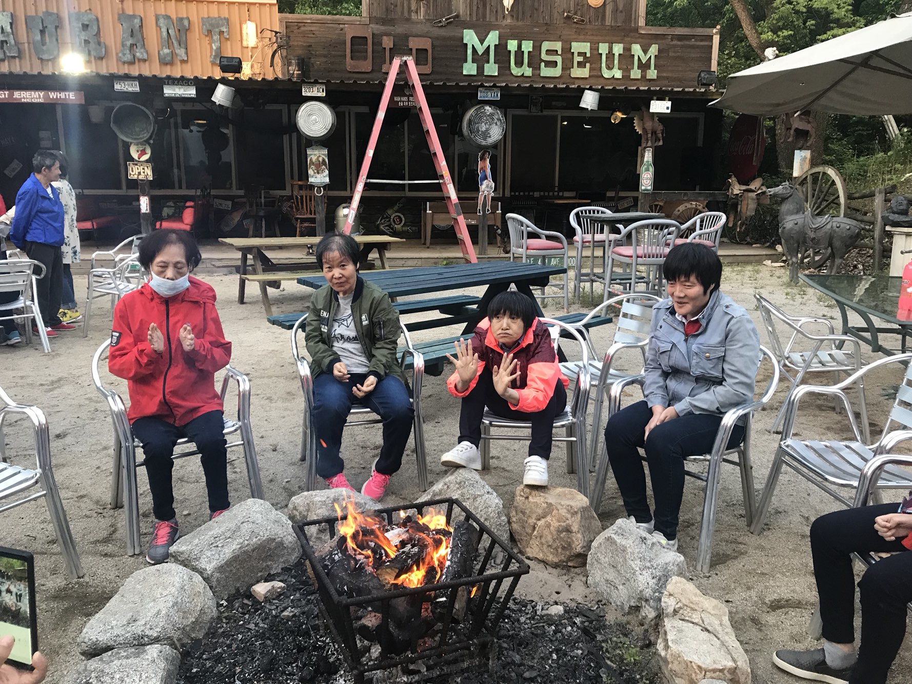 ▶ 저녁에는 맛있는 횡성한우와 모닥불 그리고 빠질 수 없는 노래~ 이사님께서 노래방기계를 설치해주셔서 이용인분들이 신나게 춤도 추고 노래도 불러보는 시간을 가지셨습니다.