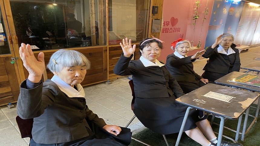 교복을 입고 학생이 되어보고 두더지 게임을 하며 스트레스도 날리고