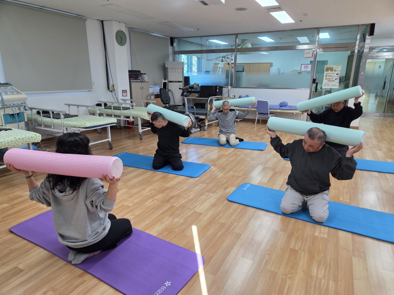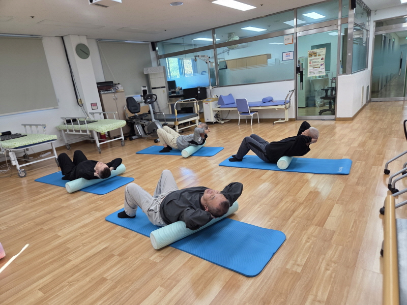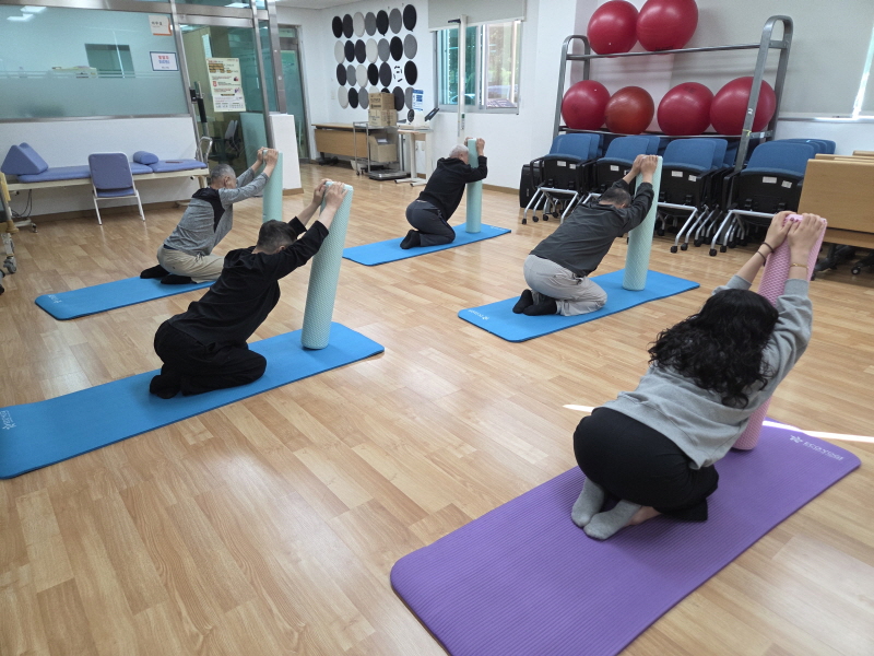 요나의집은 이용인들의 건강관리를 위해 폼롤러 운동을 진행하였습니다.