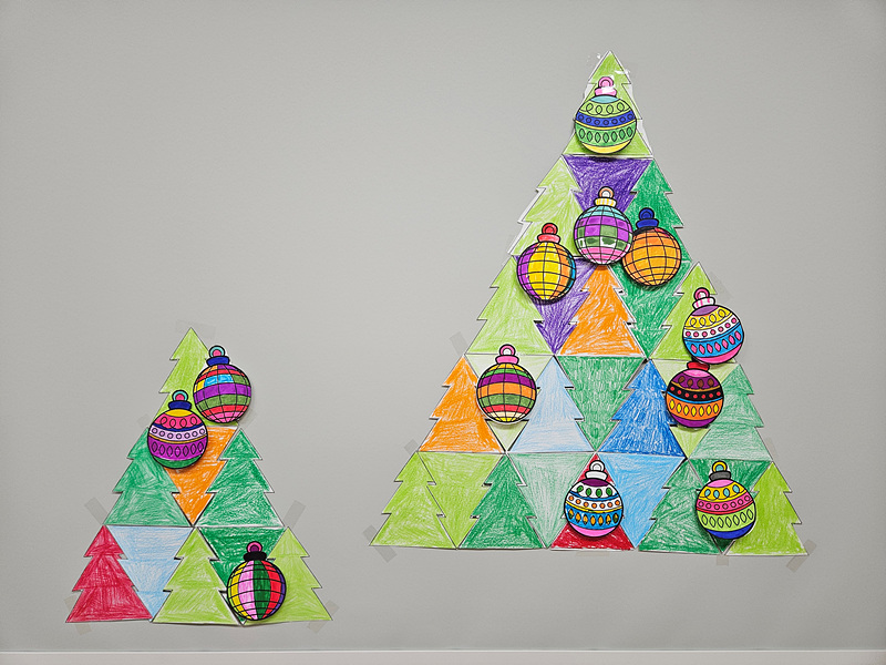 그러고 난 후 참여자들의 채색한 크리스마스트리와 방울 그림을 모아 대형 트리를 직접 만들었습니다.