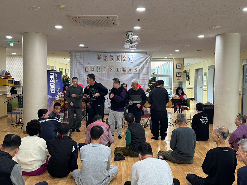 먼저 요나의집 송년 감사의 날에 식전공연을 해주신 ‘울림’이라는 통기타 팀과 팀명이 매우 정겨운 ‘급식당번’ 통기타 팀이 요나의집에 방문하여 공연을 해주셨습니다.
