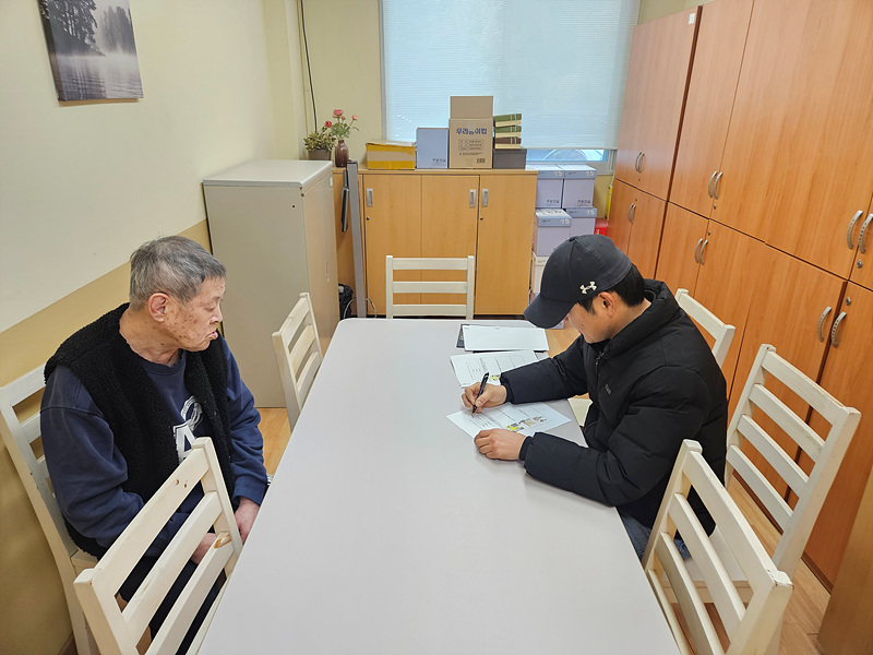 인권지킴이단 제1차 이용인 인권상황점검을 실시하였습니다. 이용인이 시설을 이용하는데 불편함이 없는지 확인을 하였으며, 이용인과의 1:1 대화를 하며 인권 및 생활 전반에 대한 상황을 점검하고 있습니다.