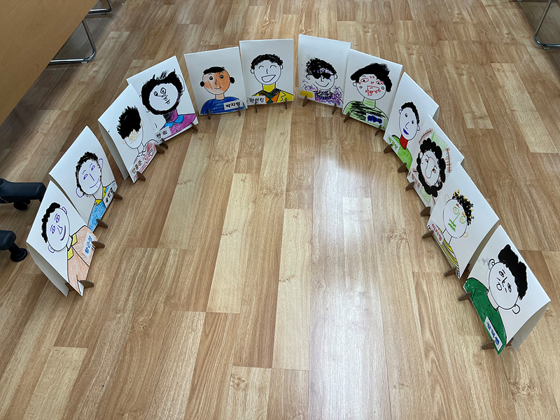 또한, 그다음으로 동그라미 도안을 확인하고 이를 참여자 자신의 얼굴로 인식하여 ‘나’를 표현하는 시간을 가졌습니다. 머리카락이 각기 다른 모양들로 표현하니 재미있고, 특별함이 더해지는 것 같았습니다. 이에 색을 다채롭게 칠하고 코, 귀, 눈, 몸을 더해서 그리니 나의 모습이 그대로 투영되는 모습이었습니다.