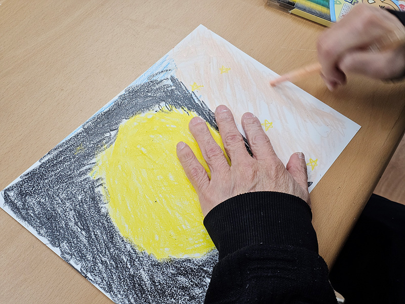 그다음 활동으로 도화지에 여러 색을 선택하여 색칠하는 시간을 가졌습니다. 각자 색칠하고 싶은 방법대로 자유롭게 색칠하였고, 색이 겹치게 색칠하는 참여자와 색칠하는 공간을 나누어 색칠하는 참여자가 있어 참여자들의 표현력이 극대화되는 순간이었습니다.