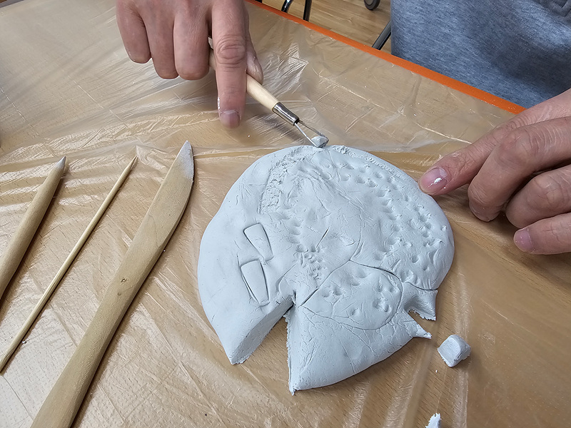 색칠 활동 마무리 후 나무 칼, 나무 송곳 등을 이용하여 흰 지점토에 모양을 내고 여러 모양의 아크릴 조각들을 붙여 나만의 썬캐처를 만드는 시간을 가졌습니다. 자유롭게 내가 표현하고 싶은 방법대로 표현하니 나만의 작품이 완성되었습니다. 그 후 참여자들이 서로 썬캐처를 만든 소감을 이야기한 후 프로그램을 마무리하였습니다.