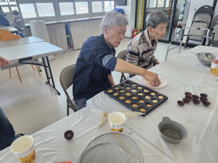 이날은 ‘미니 바나나 머핀 만들기’를 주제로 진행되었으며, 강사님의 설명에 따라 재료를 손질하고 직접 조리하는 과정을 경험하였습니다.
