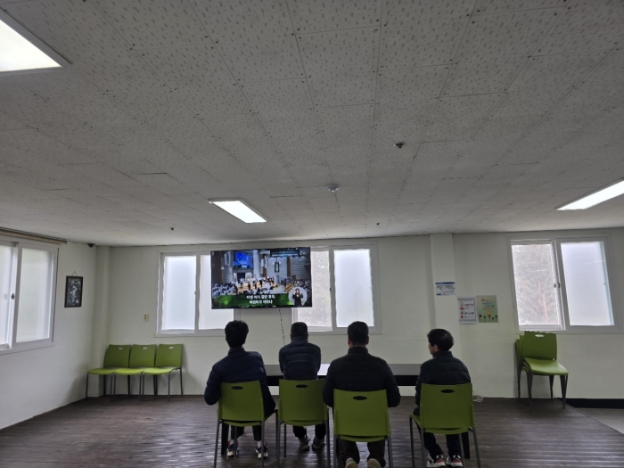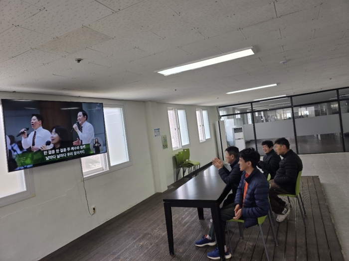이번 프로그램은 시설 내 식당 휴게실에서 기독교 예배 영상을 함께 시청하는 방식으로 이루어졌습니다.