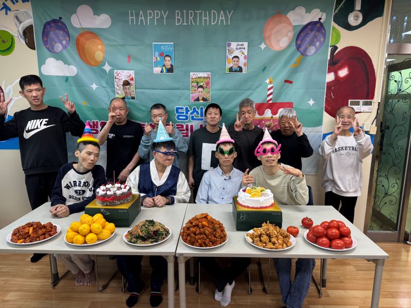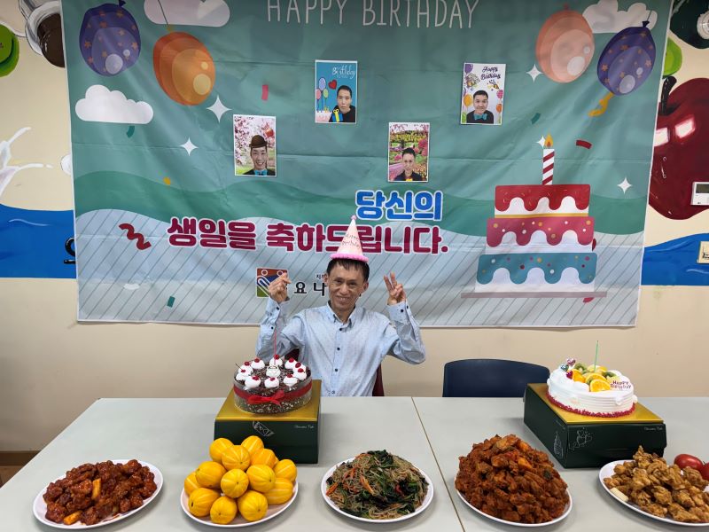 생일 노래를 함께 부르고 케이크와 간식을 나누며 따뜻하고 화기애애한 분위기 속에서 서로를 축하하는 시간을 가졌습니다.