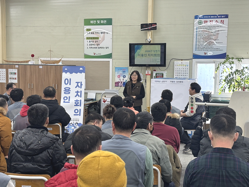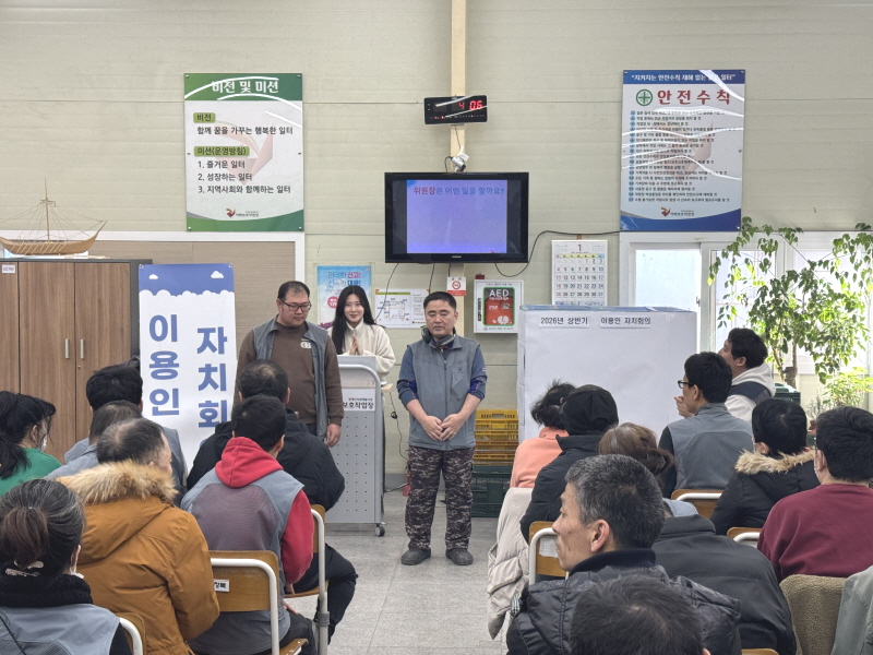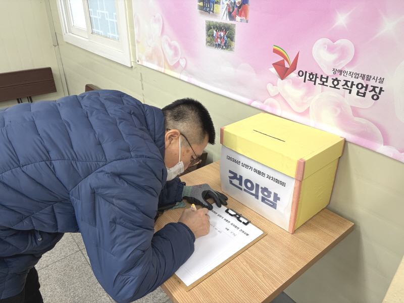 내 용 : 이화보호작업장에서는 이용인의 참여와 소통을 활성화하고 스스로 의견을 나누는 자치문화를 만들어 가기 위해 2026년 상반기 이용인 자치회의를 진행하였습니다. 이번 자치회의에서는 자치회의의 의미와 기본 규칙을 함께 알아보는 시간을 시작으로 위원장·부위원장 선출과 서기 임명을 통해 이용인이 직접 회의 운영의 주체가 되는 경험을 해보는 뜻깊은 시간이 되었습니다. 또한 사전 건의함을 통해 모아진 의견을 공유하고 회의 중 자유로운 발언을 통해 다양한 건의사항과 생각을 나누며 서로의 의견을 존중하는 자리가 마련되었습니다. 회의 후에는 다과를 함께 나누며 한층 더 편안한 분위기 속에서 소통을 이어갔고 이용인들이 자신의 의견을 적극적으로 표현하며 자치회의에 참여하는 모습이 인상적으로 남았습니다. 앞으로도 이화보호작업장은 정기적인 자치회의 운영을 통해 이용인의 목소리에 귀 기울이고 이용인 중심의 따뜻하고 열린 작업장이 될 수 있도록 지속적으로 노력하겠습니다.